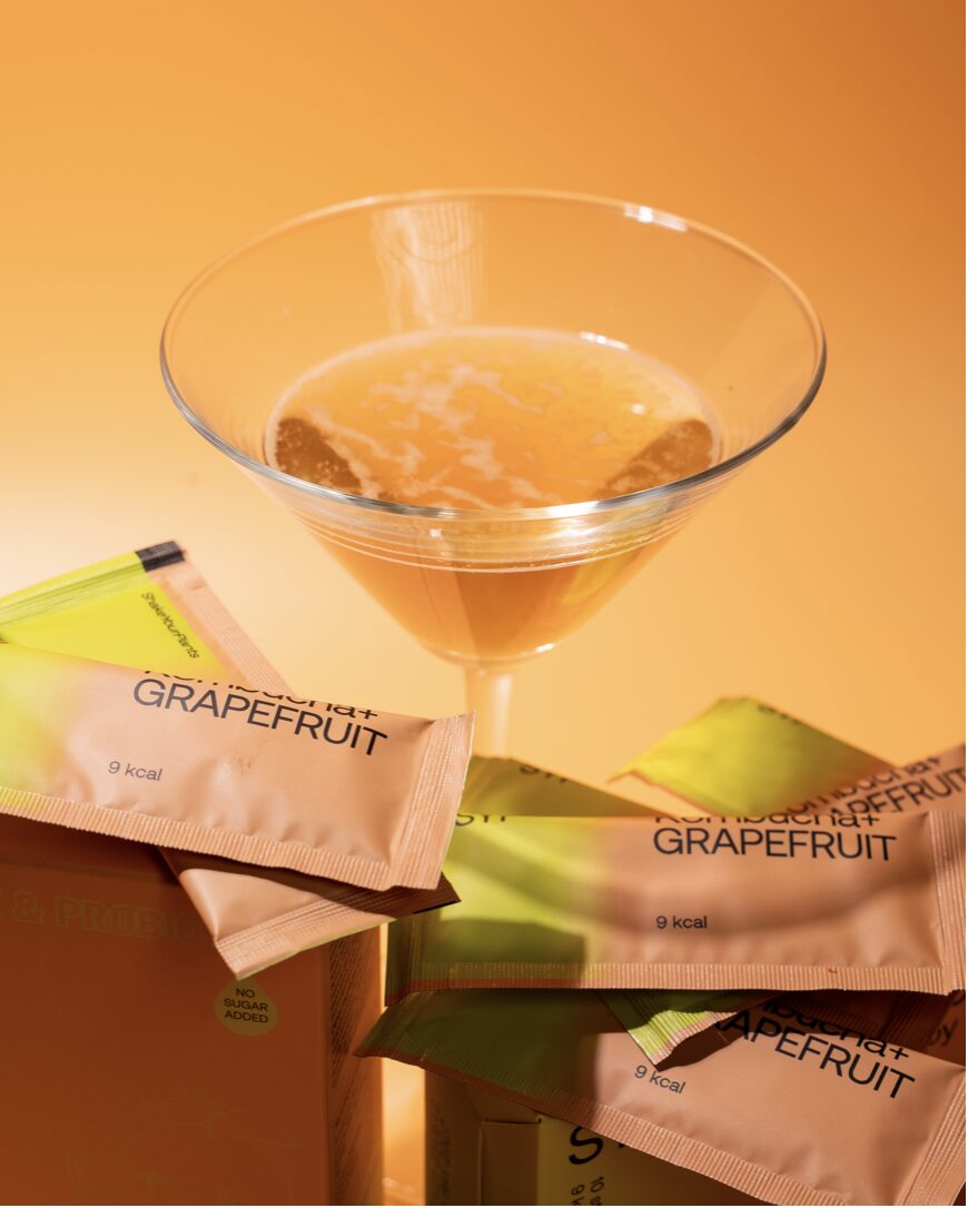 Kombucha+ est fabriqué à partir d’un mélange de thé noir de qualité supérieure, infusé avec des fibres prébiotiques, des probiotiques sans produits laitiers, des antioxydants et des composés anti-inflammatoires, fournissant 1 milliard d’UFC de probiotiques végétaliens et de fibres prébiotiques pour augmenter la diversité de votre microbiome.